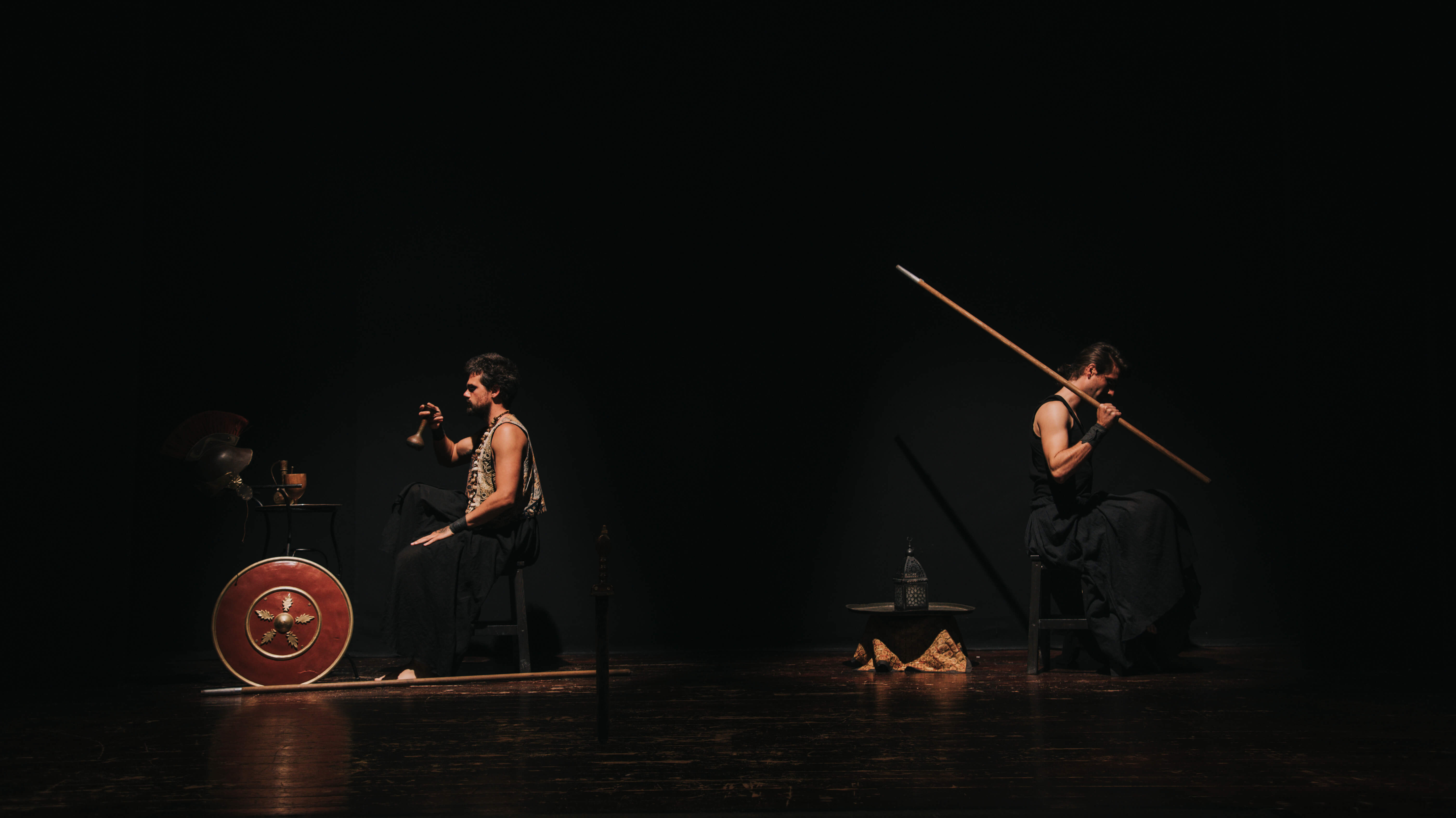 Ettore e Achille. Il duello malinconico del viver breve” si muove sul crinale tra l’epico e il poetico, tra il poema e il lirico, tra il classico e il romantico. Lì dove finisce Omero comincia Hölderlin, Leopardi, Nietzsche; dalla voce naturale alla voce microfonata del “non io”. La solitudine dei due eroi di fronte al loro comune destino di breve vita, è esaltata dalle loro figure in solitario ed è un crescendo d’intensità fino al loro furente duello. Un duello malinconico per la loro gioventù spezzata, uno scontro verbale in cui Ettore e Achille violentemente vogliono distinguersi l’uno dall’altro e in tal modo emergono le loro profonde differenze, fino a giungere al momento in cui i due avversari diventeranno due amici, due fratelli uniti da un identico destino.