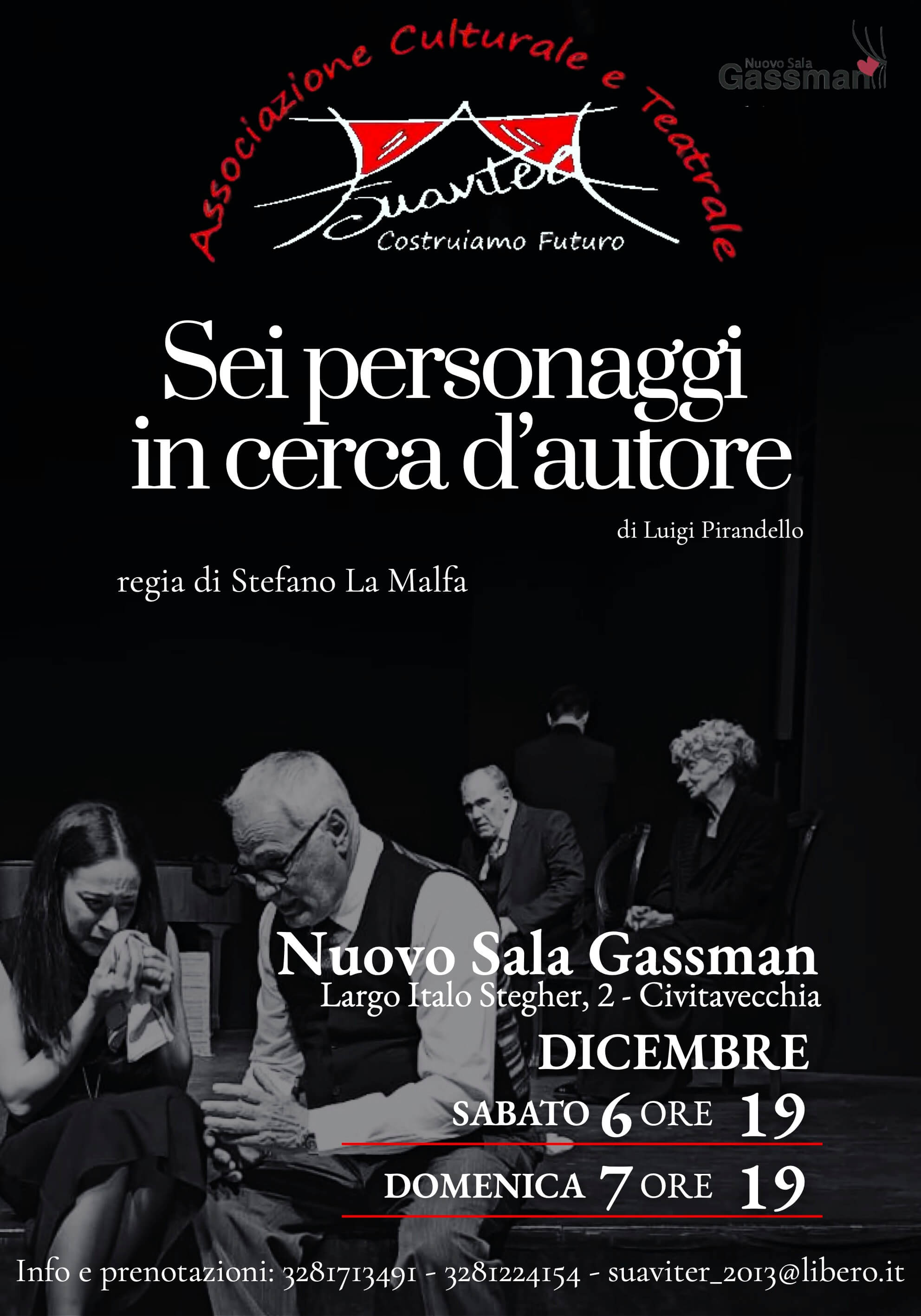 La storia di sei personaggi che irrompono durante le prove di una compagnia teatrale, chiedendo che la loro storia, abbandonata da un autore, venga rappresentata. La trama si sviluppa intorno al contrasto tra la "realtà" dei personaggi, con le loro emozioni e sofferenze, e la "finzione" teatrale, rappresentata dagli attori che tentano di metterla in scena.